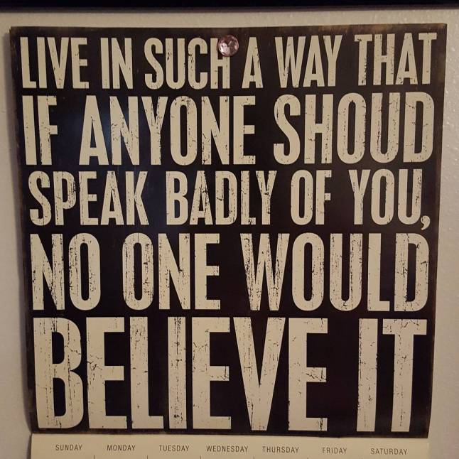 I looked up at it today and it sparked a thought. Sometimes you live, “in such a way,” but despite your best efforts they still talk and when we receive these criticisms, it can be a sharp blow. Your thoughts start to wonder: