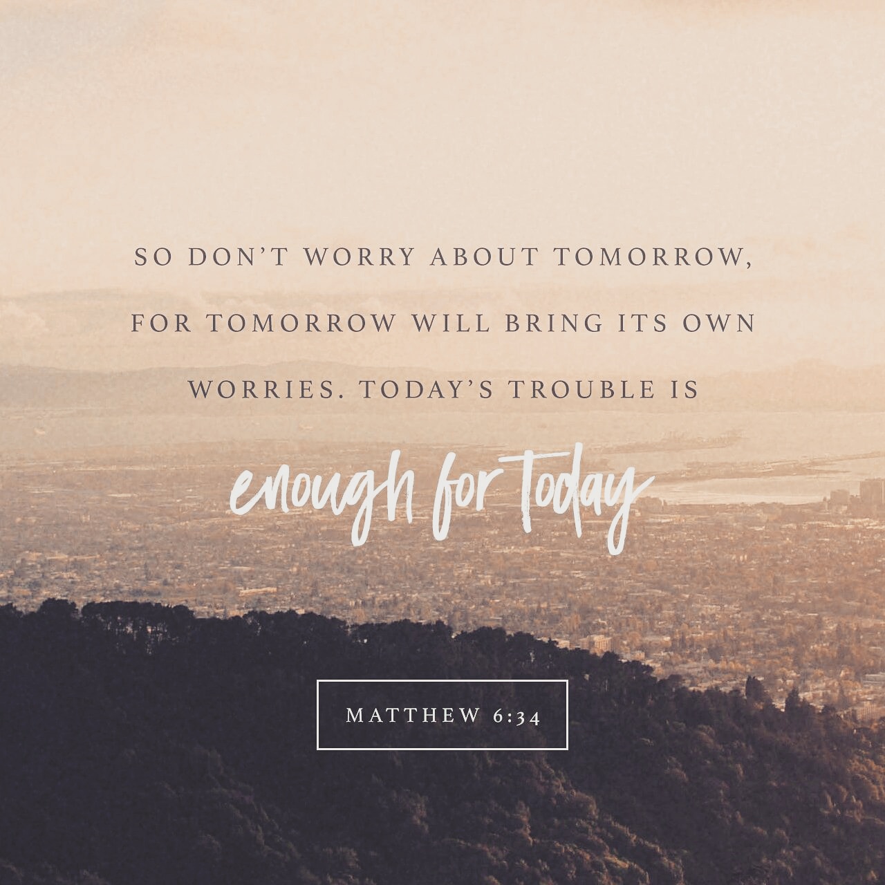 “So don’t worry about tomorrow, for tomorrow will bring its own worries. Today’s trouble is enough for today.