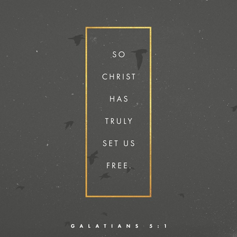 So Christ has truly set us free. Now make sure that you stay free, and don’t get tied up again in slavery to the law.