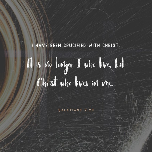 My old self has been crucified with Christ. It is no longer I who live, but Christ lives in me. So I live in this earthly body by trusting in the Son of God, who loved me and gave himself for me.