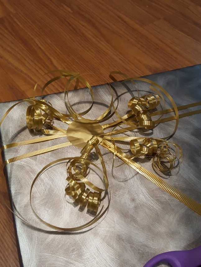Then, I started with the curled ribbon bow.