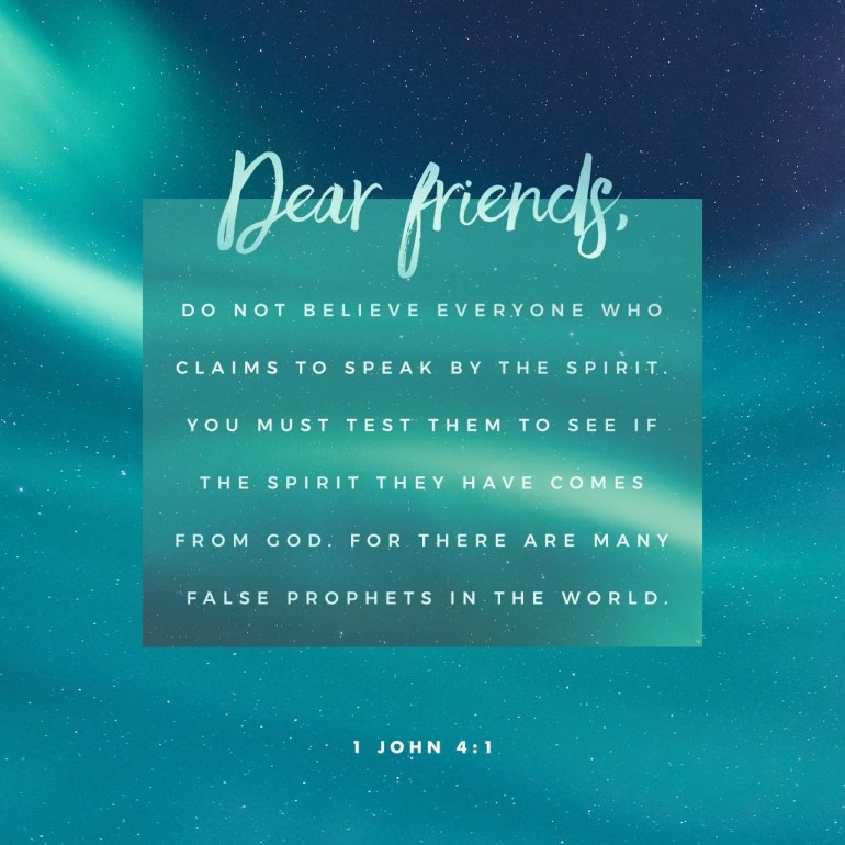 Dear friends, do not believe everyone who claims to speak by the Spirit. You must test them to see if the spirit they have comes from God. For there are many false prophets in the world.