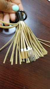It’s a tassel that includes charging cables, a battery cell, and a built in carabinber clip!