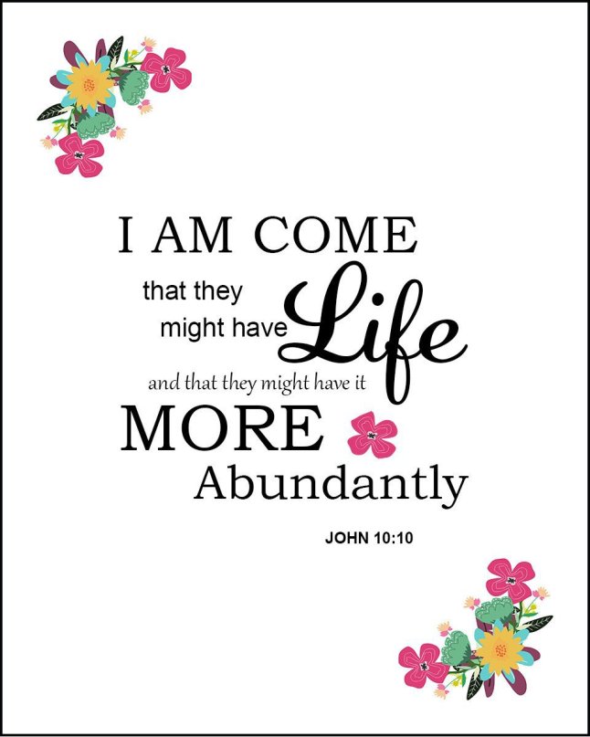 The term “abundant life” comes from the Bible verse John 10:10b, “I am come that they might have life, and that they might have it more abundantly.” “More abundantly” means to have a superabundance of a thing. “Abundant life” refers to life in its abounding fullness of joy and strength for mind, body, and soul.