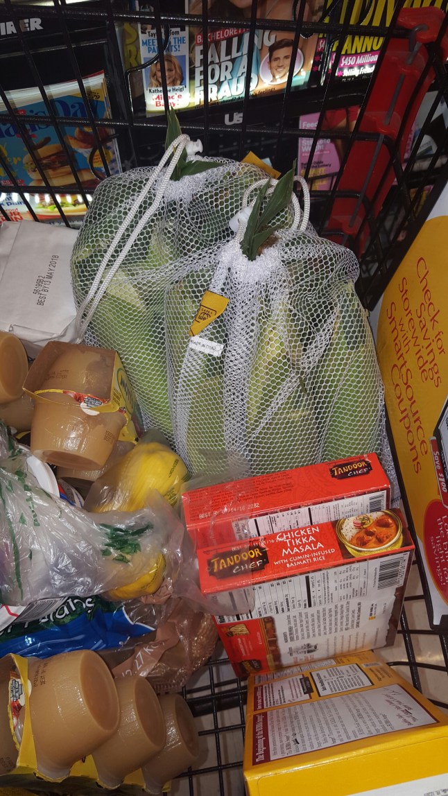 I love buying veggies in the summer, but hate the store bags. I filled up the two produce bags with fresh corn. This is a snapshot of our cart in the checkout line.