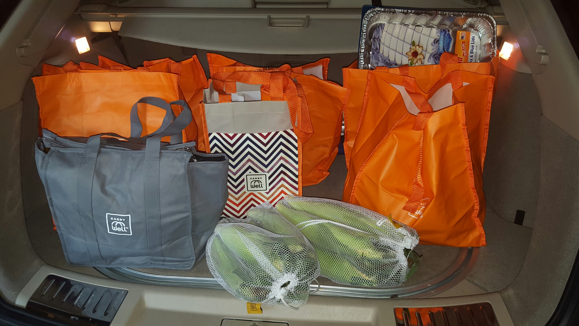 As a result, I was able to unload the groceries and put everything away in under 30 minutes–Having everything pre-grouped meant a quick transfer to the fridge/pantry and then the bag was back on the utility rack!